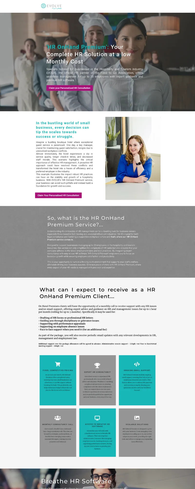 The perfect way to promote your services to a large group of potential clients in an environment that YOU control, is through your website. Here we were able to help our HR client define our client's target audience and showcase the services that best fit that group by utilising a one page campaign website for their business.